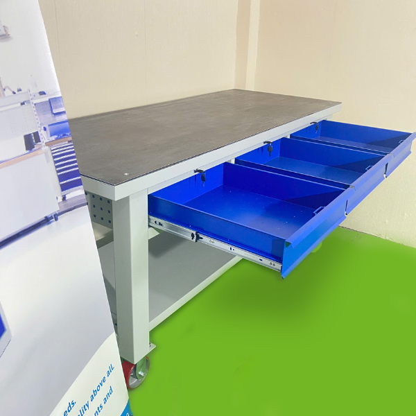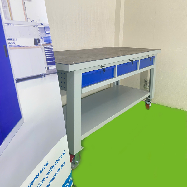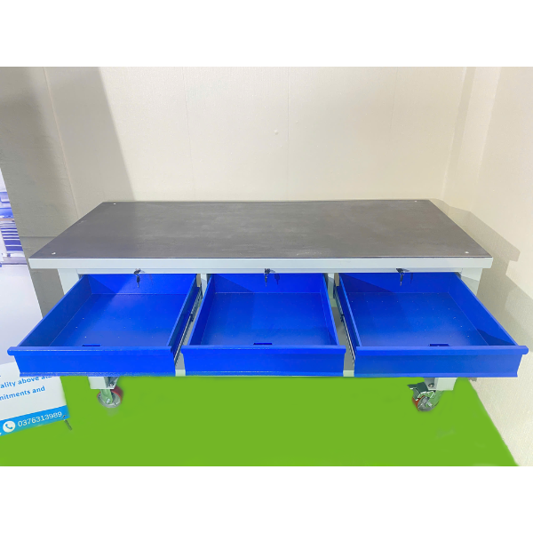 | Ngăn kéo | Bàn có 3 ngăn kéo Kích thước: 495x500xH120mm Tải trọng 40kg/ ngăn Độ mở 100% |