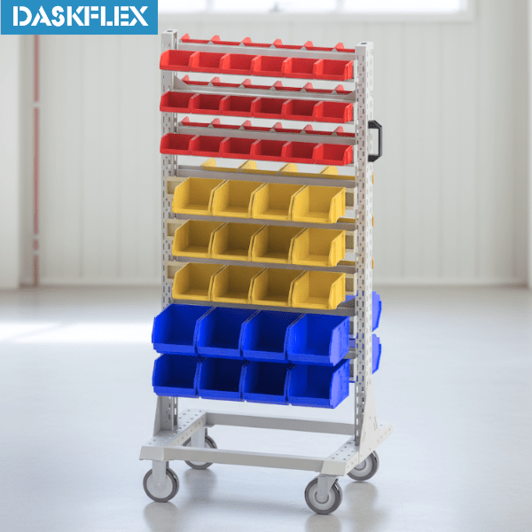 | Thông tin sản phẩm | Giá treo có 2 mặt gắn full thanh treo linh kiện Phía dưới trang bị 4 bánh xe: 2 bánh xe cố định và 2 bánh xe xoay khóa |