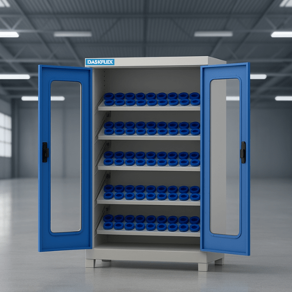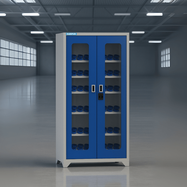| Thông tin sản phẩm | Có 7 tấm đợt, thay đổi linh hoạt, mỗi tấm có 18 vị trí để bầu dao Tủ cánh đôi, dạng cánh mở Trên cánh tủ có ốp tấm mica trong suốt |