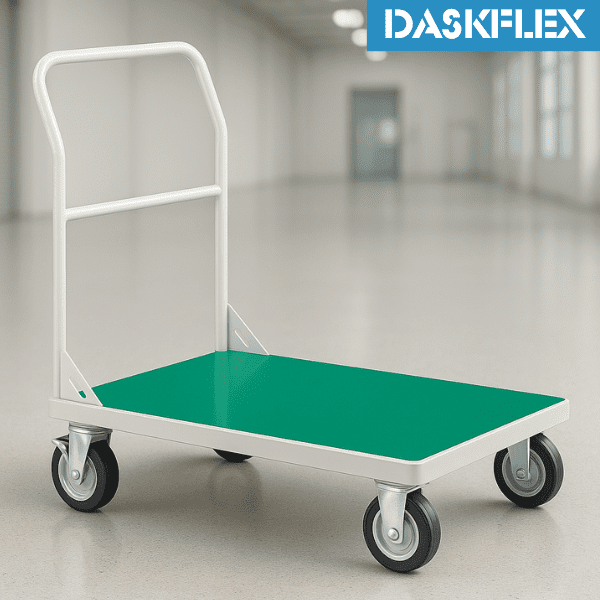 | thông tin sản phẩm | Phía dưới mỗi tầng có lót tấm gỗ MDF dày 18mm Bề mặt có ốp tấm thép chịu lực dày 3mm Phía trên phủ thảm cao su màu xanh dày 2mm Xe trang bị 4 bánh xe chống tĩnh điện D125: 2 bánh cố định, 2 bánh xoay khóa |