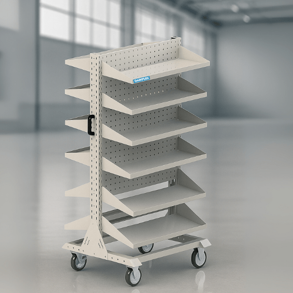 | thông tin sản phẩm | Tầng để khay có thể nghiêng 12° Xe đẩy gồm 12 tầng chứa khay linh kiện |