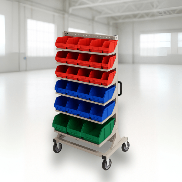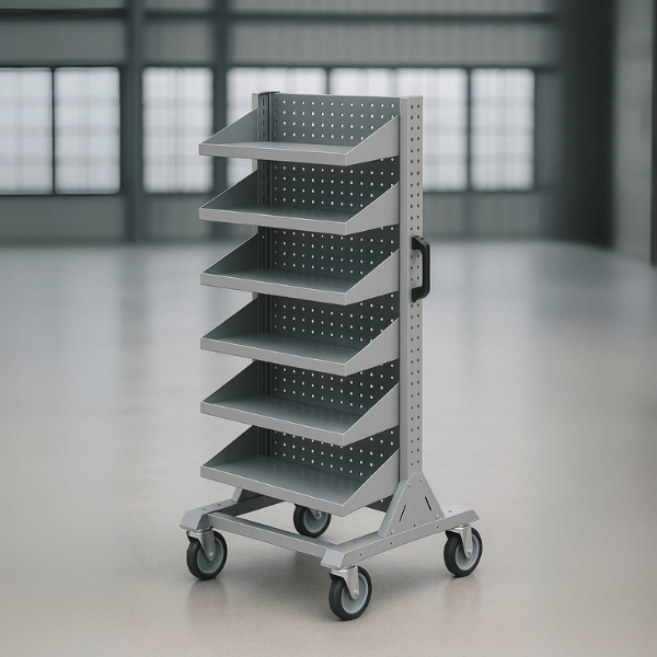 | thông tin sản phẩm | Xe đẩy gồm một mặt 6 tầng chứa khay linh kiện và một mặt full Panel treo đồ Mỗi tầng có khả năng chịu tải tới 50kg Tầng để khay có thể nghiêng 12° Mặt lưng gồm 4 tấm Panel. Kết cấu dạng cài tiện lợi |
