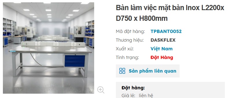 - Bàn thao tác kỹ thuật mặt bàn inox mã TPBANT0052