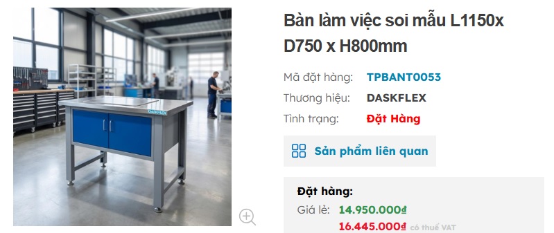 Trong môi trường sản xuất hiện đại, bàn kiểm tra sản phẩm và bàn thao tác đóng vai trò quan trọng trong việc đảm bảo chất lượng, độ chính xác và hiệu suất làm việc. Nhận thức rõ điều đó, Daskflex đã triển khai thiết kế và hoàn thiện lắp ráp bộ giải pháp bàn làm việc kỹ thuật gồm bàn thao tác mặt bàn inox TPBANT0052 và bàn kiểm tra sản phẩm TPBANT0053 cho khách hàng, đáp ứng tiêu chuẩn khắt khe của nhà xưởng, phòng QC/QA và khu vực R&D.
